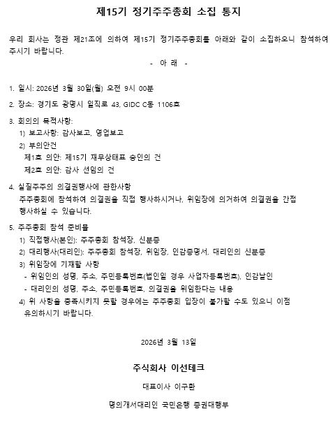 협력을 통해 기술을 선도하는 기업 주식회사 이선테크